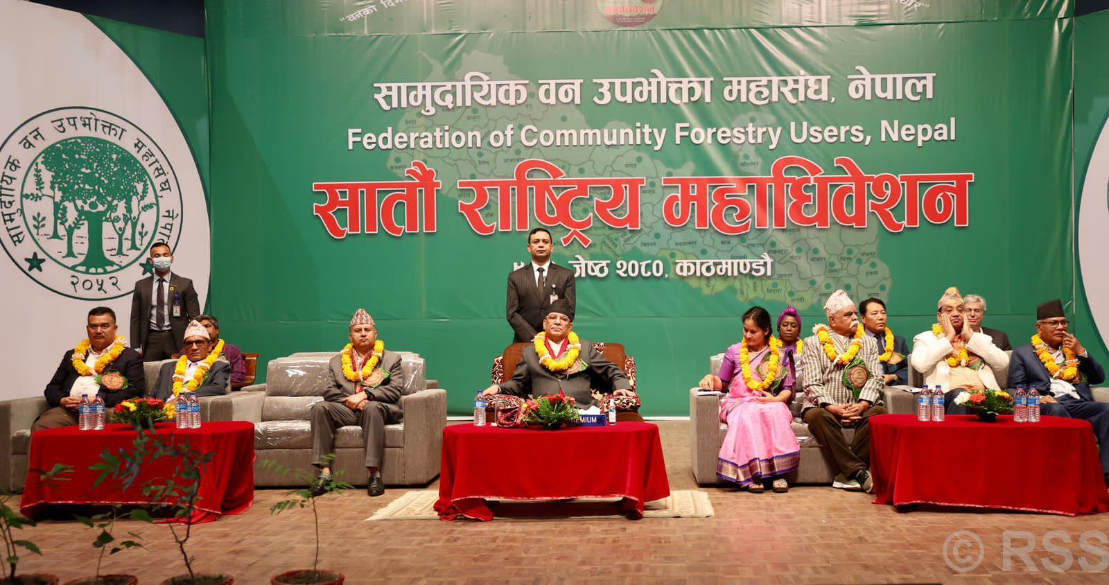 सामुदायिक वन उपभोक्ता महासङ्घ नेपालको सातौँ राष्ट्रिय महाधिवेशनको उद्घाटनमा आज प्रधानमन्त्री प्रचण्डले भने, “वन व्यवस्थापनसम्बन्धी विभिन्न अध्ययनअनुसार हाल नेपालमा वार्षिक करिब छ करोड क्युबिक फिट काठको आवश्यकता छ । हामीले वनको दिगो व्यवस्थापन गर्न सक्ने हो भने सामुदायिक वनबाट मात्रै वार्षिक १० करोड ११ लाख क्युबिक फिट काठ उत्पादन गर्न सकिने रहेछ ।”