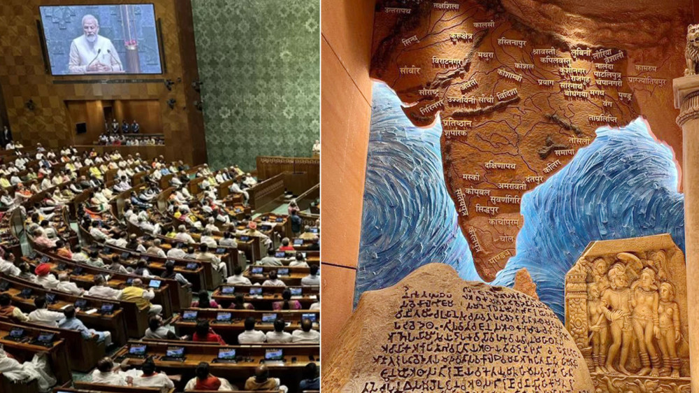 काठमाण्डु- भारतमा गत आइतबार उद्घाटन भएको नयाँ संसद् भवनमा ‘अखण्ड भारत’को नक्सा भित्तामा अंकित गरिएको छ । सो नक्सामा ‘अखण्ड भारत’ भन्दै नेपालको लुम्बिनी, कपिलवस्तुदेखि पाकिस्तानको तक्षशिलासम्मको क्षेत्रलाई समेटिएको हो ।