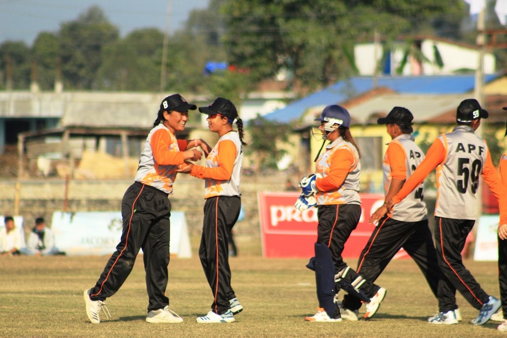 प्रदेश १ का लागि कप्तान रुविना क्षेत्रीले ४६ बलमा ३ चौकासहित सर्वाधिक ३४ रन जोडिन । यस्तै अप्सरी बेगमले ३४ बलमा १ चौकासहित ११ रनको योगदान दिइन् । अन्य खेलाडीले भने दोहोरो अंक बनाउन सकेनन् । एपीएफकी सीता राना मगरले सर्वाधिक ३ विकेट लिइन् । रेखा रावलले २ र करुणा भण्डारीले १ विकेट लिइन् ।