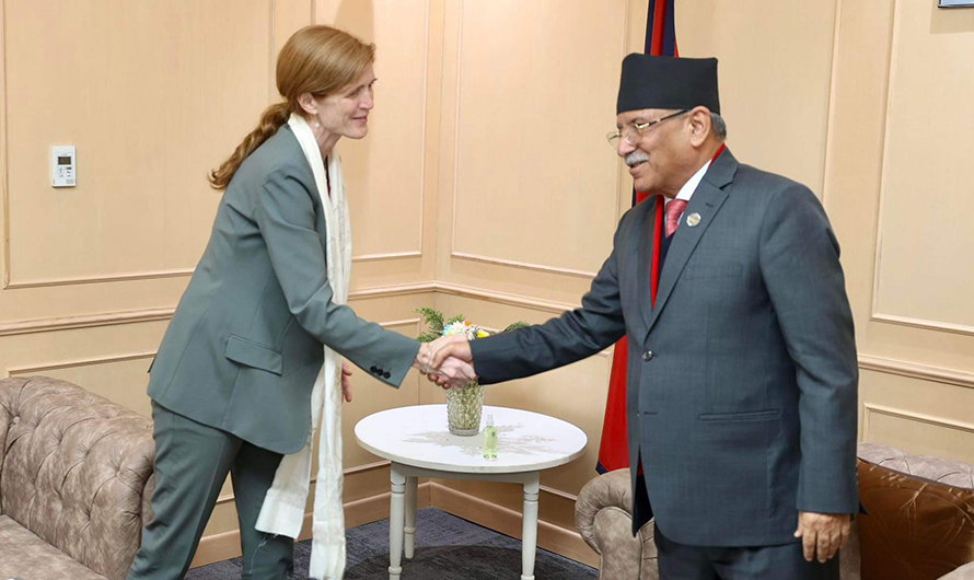 बुधबार सिंहदरवारस्थित प्रधानमन्त्री कार्यालयमा प्रधानमन्त्री पुष्पकमल दाहाल र युएसएआइडीकी प्रमुख सामन्था पावरबीच भेटवार्ता भएको हो। यसअघि उनले उपप्रधान तथा अर्थमन्त्री विष्णुप्रसाद पौडेलेसँग भेटवार्ता गरेकी थिइन्।