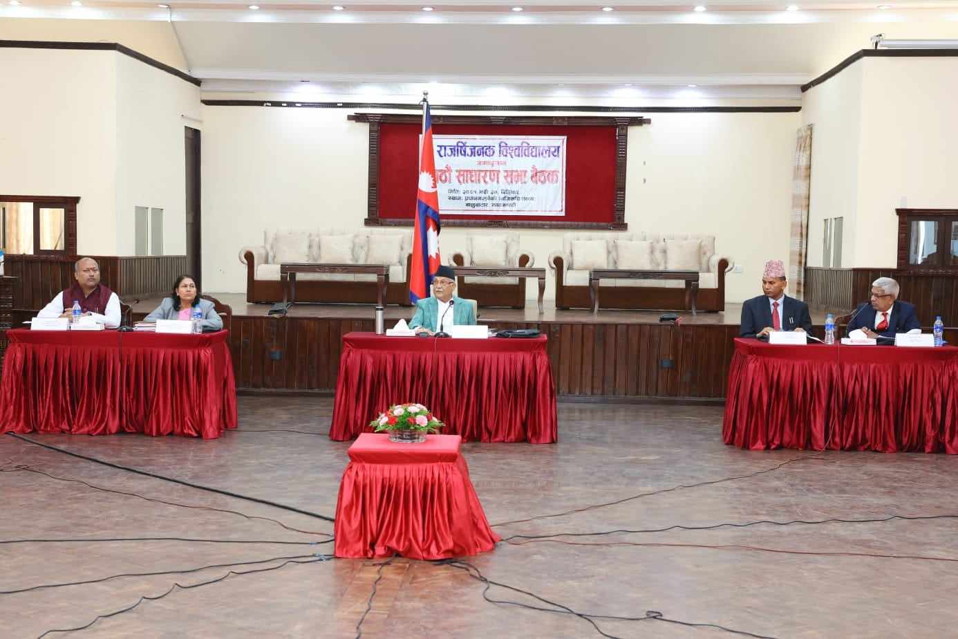 प्रधानमन्त्री निवास, बालुुवाटारमा आज भएको उक्त विश्वविद्यालयको आठौँ साधारणसभा बैठकमा प्रधानमन्त्री एवं कुलपति ओलीले सक्षम जनशक्ति तयारीका लागि देखिएका समस्याको समाधानका लागि संयुक्तरुपमा प्रयास केन्द्रित गर्नुपर्नेमा जोड दिएका हुन् ।