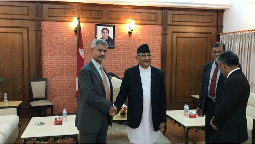 बालुवाटारमा भएको भेटमा प्रधानमन्त्री ओलीका प्रमुख राजनीतिक सल्लाहकार विष्णु रिमाल, परराष्ट्र सल्लाहकार राजन भट्टराई, पराराष्ट्र सचिव शंकरदास बैरागी, नेपालका लागि भारतीय राजदूत मञ्जीवसिंह पुरी लगायत सहभागी थिए। तीन वर्षको अन्तरालपछि नेपाल-भारत दुईपक्षीय समग्र विषयमा छलफल गर्न २५ सदस्यीय उच्च अधिकारीको नेतृत्व गर्दै जयशंकर काठमाडौं आएका हुन्। संविधान जारी भएलगत्तै भारतले नेपालमा नाकाबन्दी लगाउँदा जयशंकर भारतीय विदेश सचिव थिए। त्यतिबेला पनि उनले नेपाल भ्रमण गरेका थिए।
