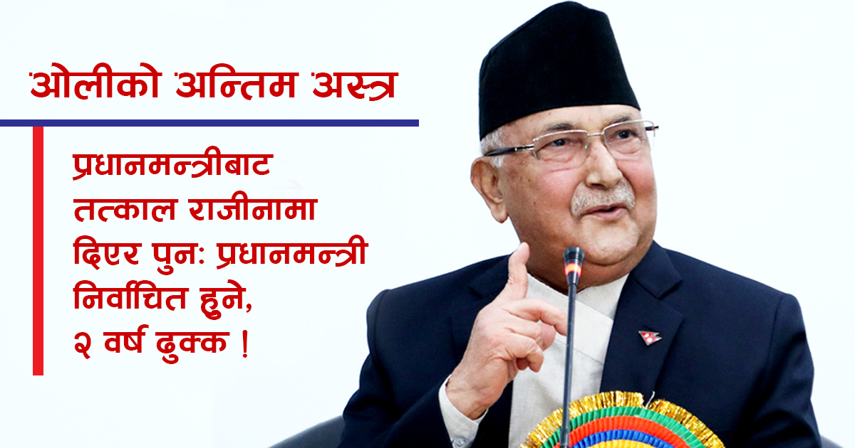 प्रचण्ड समूहको माग अनुसार राजीनामा दिनै परेको अवस्थामा प्रधानमन्त्री ओलीले तत्कालै राजीनामा दिएर पुनः आफू नै प्रधानमन्त्री हुने रणनीति समेत बनाएको स्रोतले जनाएको छ ।