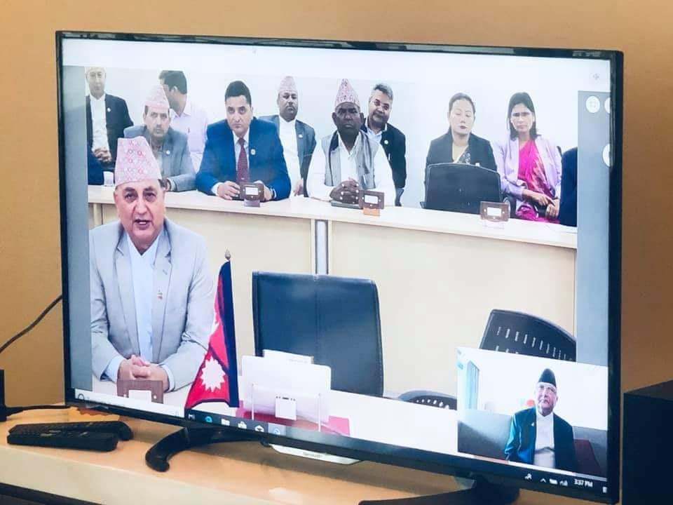 प्रधानमन्त्रीले मंगलबार दिउँसो १ बजे भिडियोमार्फत छलफल गरेको प्रधानमन्त्रीका प्रमुख राजनीतिक सल्लाहकार विष्णु रिमालले ट्विटमाफत् जानकारी जानकारी दिए । प्रधानमन्त्रीले मन्त्रीहरुलाई आ–आफ्नो मन्त्रालयको कामको जानकारी दिएको रिमालले जानकारी दिए ।