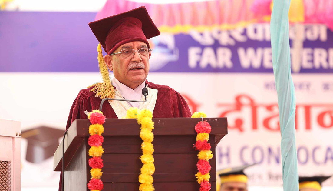 सुदूरपश्चिम विश्वविद्यालयको चौथो दीक्षान्त समारोहलाई सम्बोधन गर्दै प्रधानमन्त्री एवं विश्वविद्यालयका कुलपति ‘प्रचण्ड’ले प्यालेस्टाइन विद्रोहीको आक्रमणमा परेर नेपाली विद्यार्थीले ज्यान गुमाएको घटनाप्रति दुःख व्यक्त गरे ।