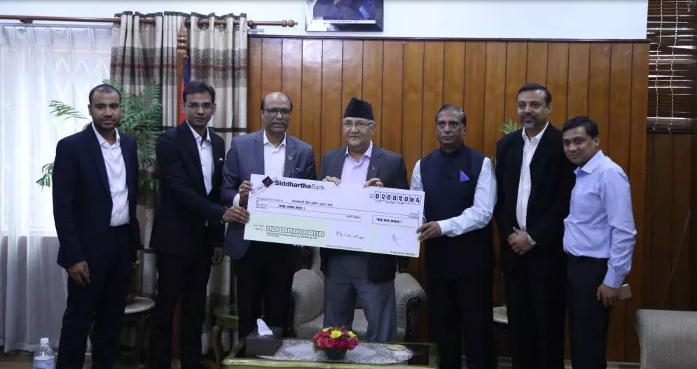 ‘प्राकृतिक विपत्तीमा परेका जनताहरुलाई तपाईंहरुले दिएको रकमले उद्धार र राहातमा ठुलो सहयोग पुग्दछ’, प्रधानमन्त्री ओलीले भने, ‘मानवीय सहयोगको यस कार्यका लागि तपाईंहरुलाई हार्दिक धन्यवाद छ ।’
