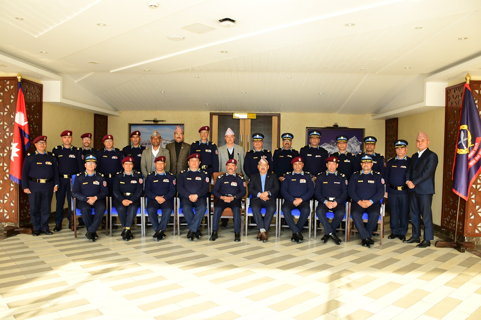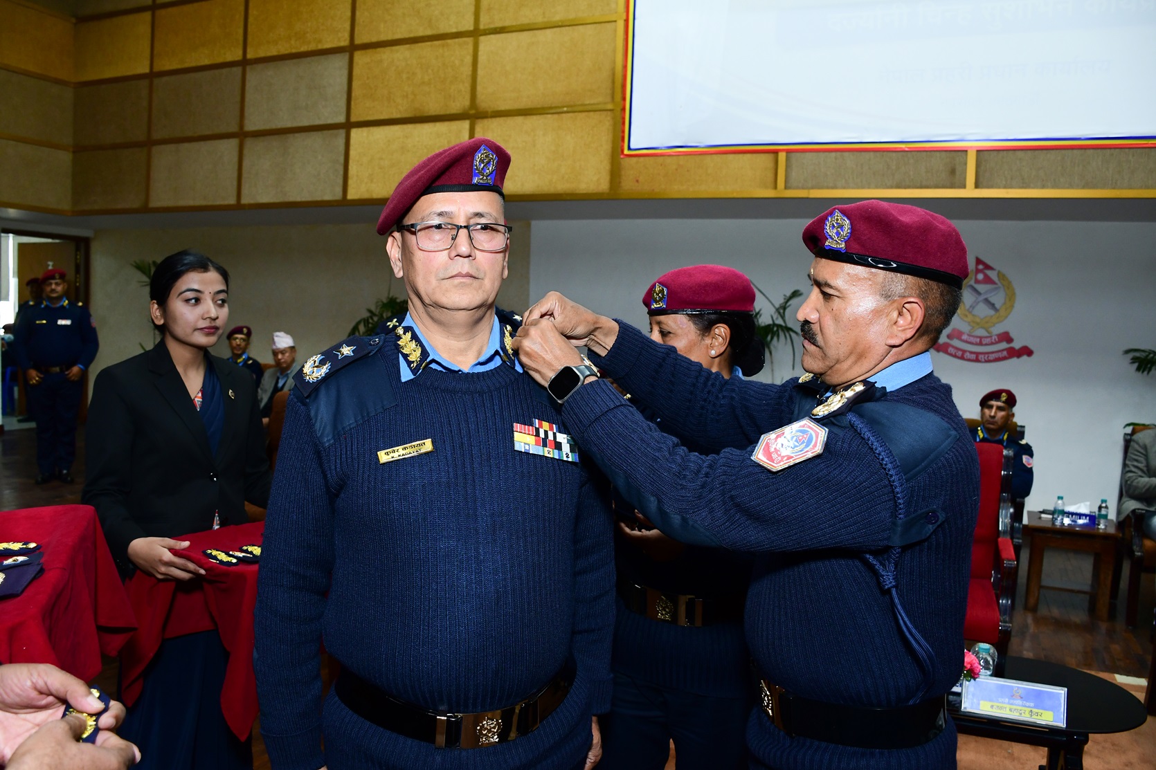 दर्ज्यानी चिह्नद्वारा सुशोभित हुनेहरूमा प्रहरी अतिरिक्त महानिरीक्षकद्वय कुवेर कडायत र रबिन्द्र केसी, प्रहरी नायव महानिरीक्षकहरू ईश्वर कार्की, राजेन्द्र प्रसाद भट्ट, दिनेश कुमार आचार्य, अरूण पौडेल र गोबिन्द थपलिया तथा प्राविधिक प्रहरी वरिष्ठ उपरीक्षक लालबाबु गिरी रहेका छन् ।