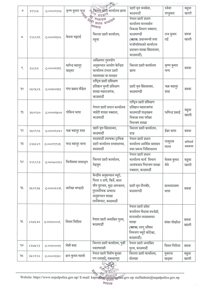 सरुवाको सूची सार्वजनिक गरिएको छ ।