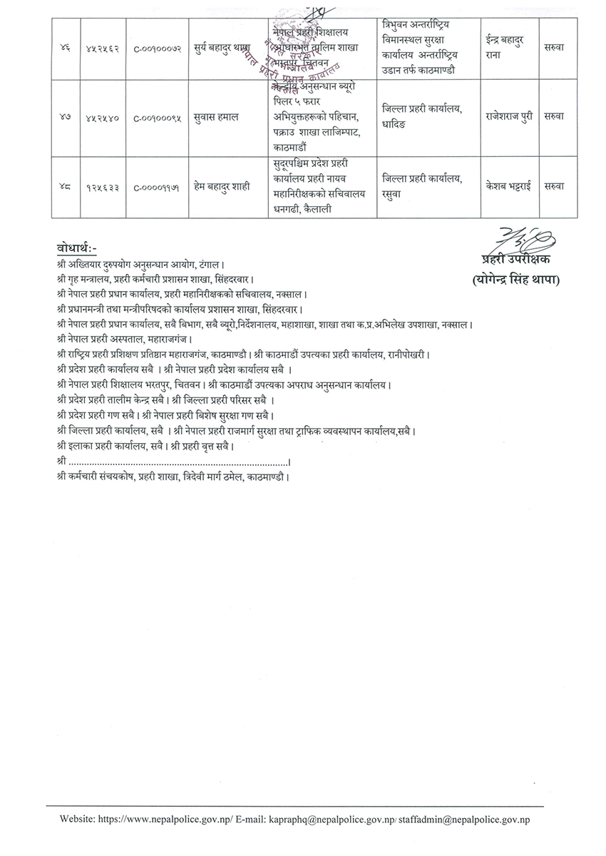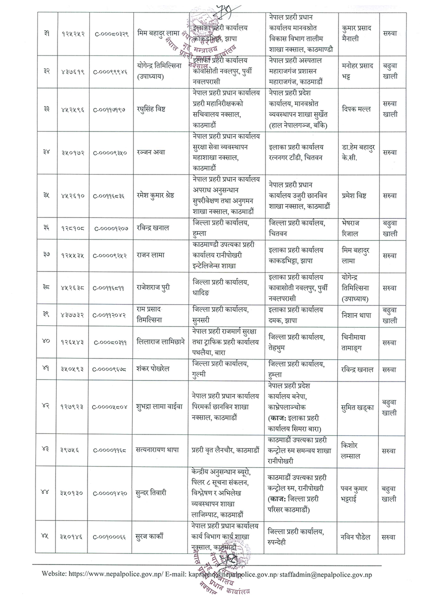 काठमाण्डु – नेपाल प्रहरीका ४८ प्रहरी नायब उपरीक्षक (डीएसपी) को सरुवा गरिएको छ ।
