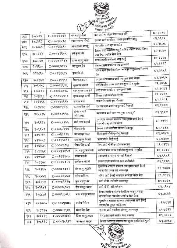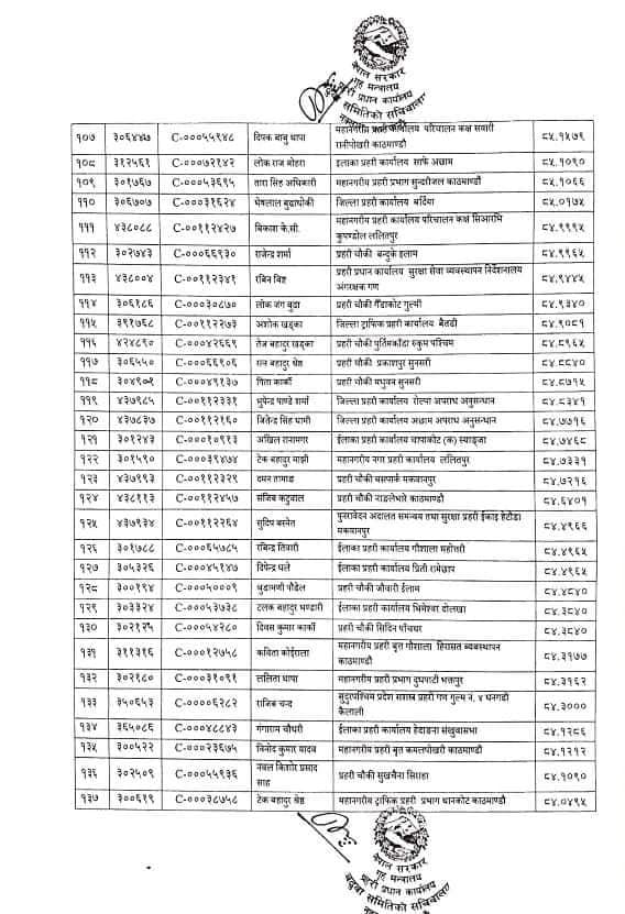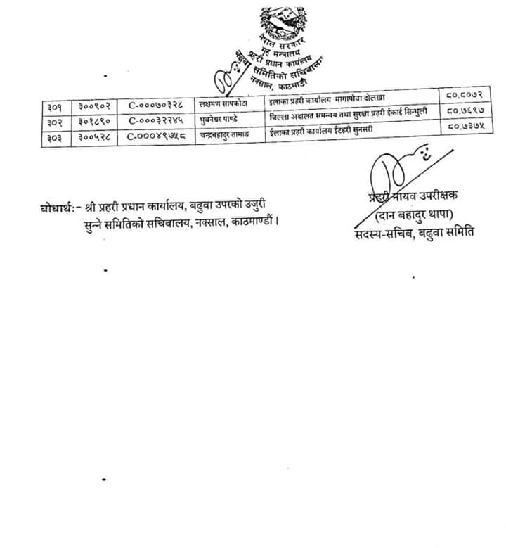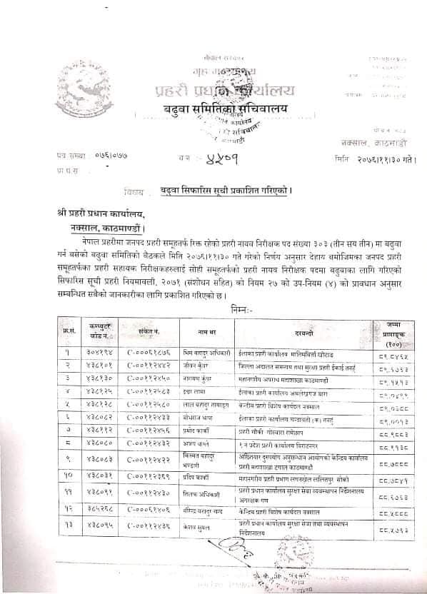 बढुवा भएका प्रहरी नायब निरीक्षकको नामः