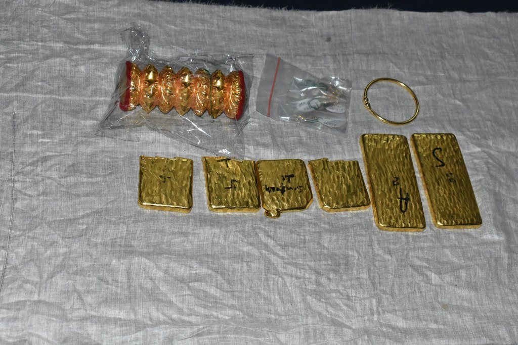 प्रहरीका अनुसार लगुनले लगाएको दुबै जुत्ताको तलुवामा २÷२ बिस्कुट र बुद्धिमानले लगाएको जुत्ताको तलुवामा १÷१ बिस्कुट गरी ६ थान बिस्कुट भेटिएको हो । जुत्ताको तलुवामा लुकाएको उक्त सुन ३ किलो ९९४ ग्राम र बुद्धिमानले बोकेको झोलामा तिलहरी थान १, वाला थान १, गणेश लकेट ५ थानको (तौल २७.४९ ग्राम) गरी जम्मा ४ किलो २१.४९ ग्राम सुन भेटिएको बाँके प्रहरीले जनाएको छ ।