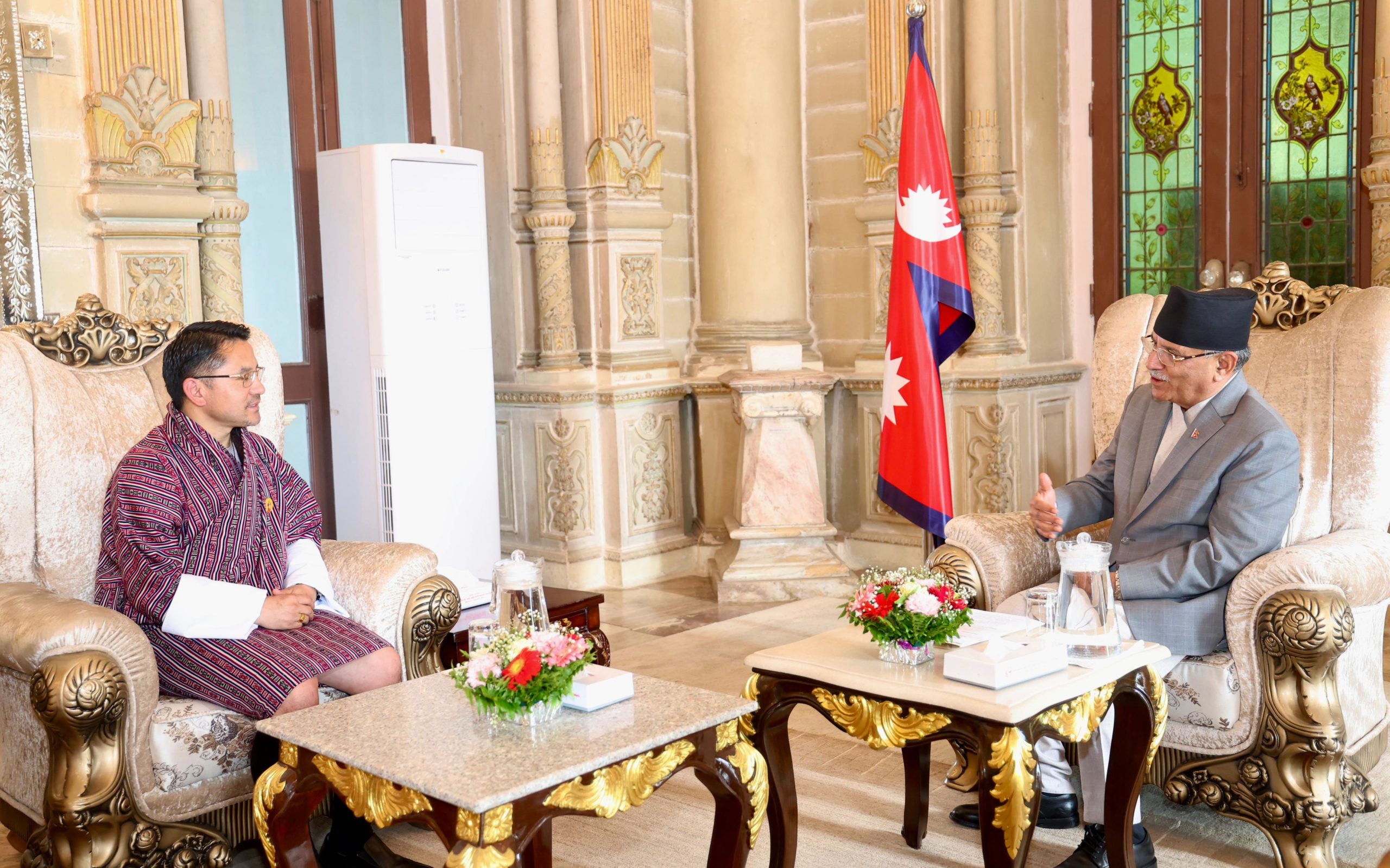 काठमाण्डु – प्रधानमन्त्री पुष्पकमल दाहाल ‘प्रचण्ड’सँग नेपाल भ्रमणमा रहेका भुटानका कृषि तथा पशुपंक्षीमन्त्री ल्योन्पो योन्टेन फिन्टक्शोले शिष्टाचार भेट गरेका छन् ।