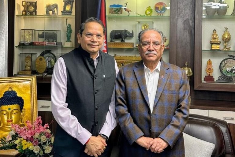काठमाण्डु – पूर्वप्रधानमन्त्री तथा नेकपा माओवादी केन्द्रका अध्यक्ष पुष्पकमल दाहाल ‘प्रचण्ड’ र भारतीय जनता पार्टी (भाजपा) विदेश विभाग प्रमुख विजय चौथाइवालेबीच भेटवार्ता भएको छ ।