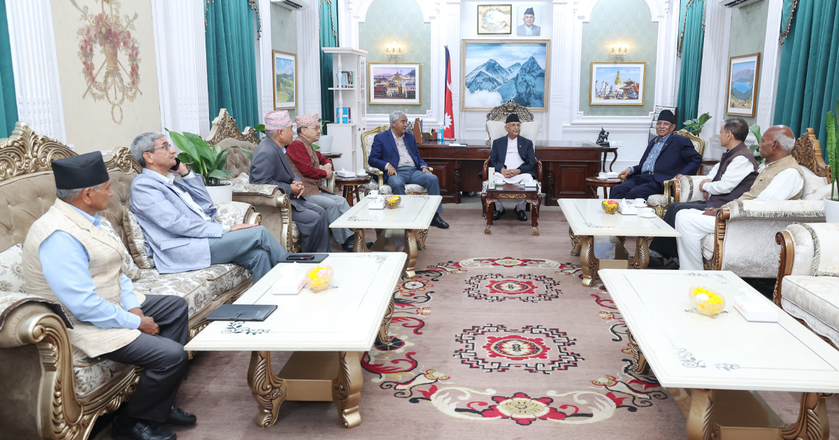 भेटमा प्रधानमन्त्री ओली, कांग्रेस सभापति देउवा, गृहमन्त्री रमेश लेखक, माओवादी अध्यक्ष प्रचण्ड, महासचिव देव गुरूङ, प्रमुख सचेतक हितराज पाण्डेको सहभागिता छ ।
