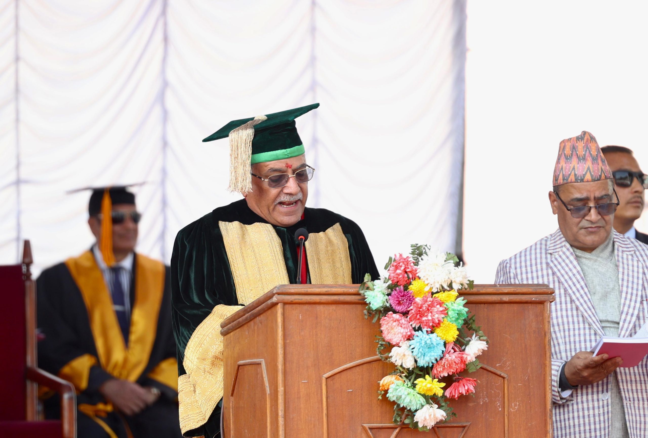 सोमबार दिउँसो त्रिभुवन विश्वविद्यालयको उनन्चासौं दीक्षान्त समारोहलाई सम्बोधन गर्दै प्रधानमन्त्री प्रचण्डले भूमण्डलीकृत विश्वको दबाब तत्कालका निम्ति हाम्रो काबुबाहिर देखिएको बताए ।