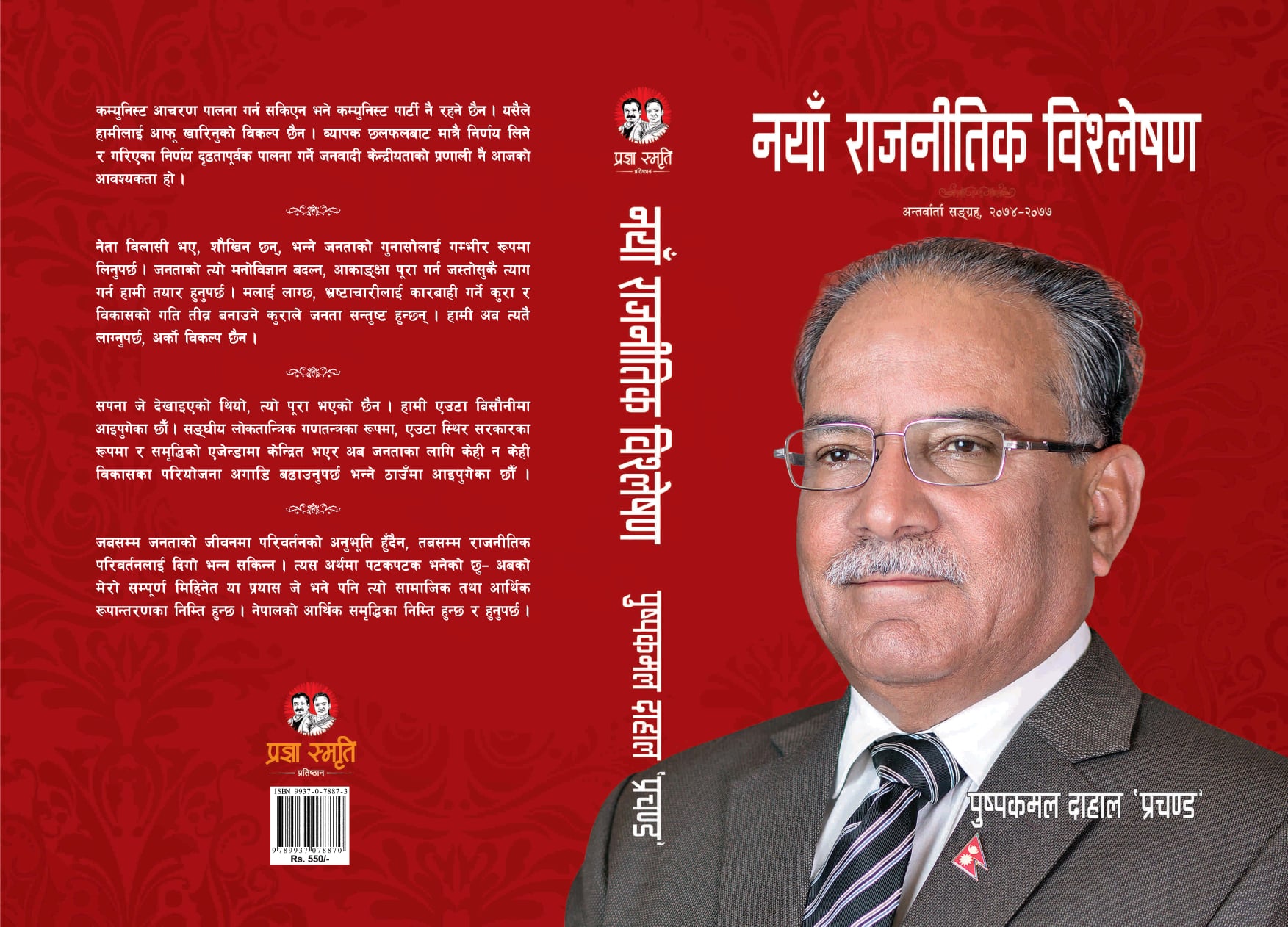 काठमाण्डु – नेपाल कम्युनिस्ट पार्टी (नेकपा) कार्यकारी अध्यक्ष तथा पूर्वप्रधानमन्त्री पुष्पकमल दाहाल ‘प्रचण्ड’ को पुस्तक ‘नयाँ राजनीतिक विश्लेषण’ सार्वजनिक भएको छ ।