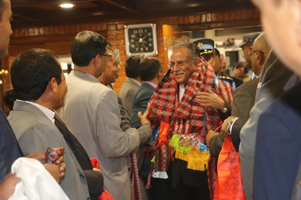 काठमाडौं– नेकपाका अध्यक्ष एवं पूर्वप्रधानमन्त्री पुष्पकमल दाहाल ‘प्रचण्ड’ स्वदेश फर्किएका छन्। पत्नी सीता दाहालको उपचारका लागि १० दिनअघि अमेरिका पुगेका प्रचण्ड बिहीबार बेलुका स्वेदश फर्किएका हुन्।