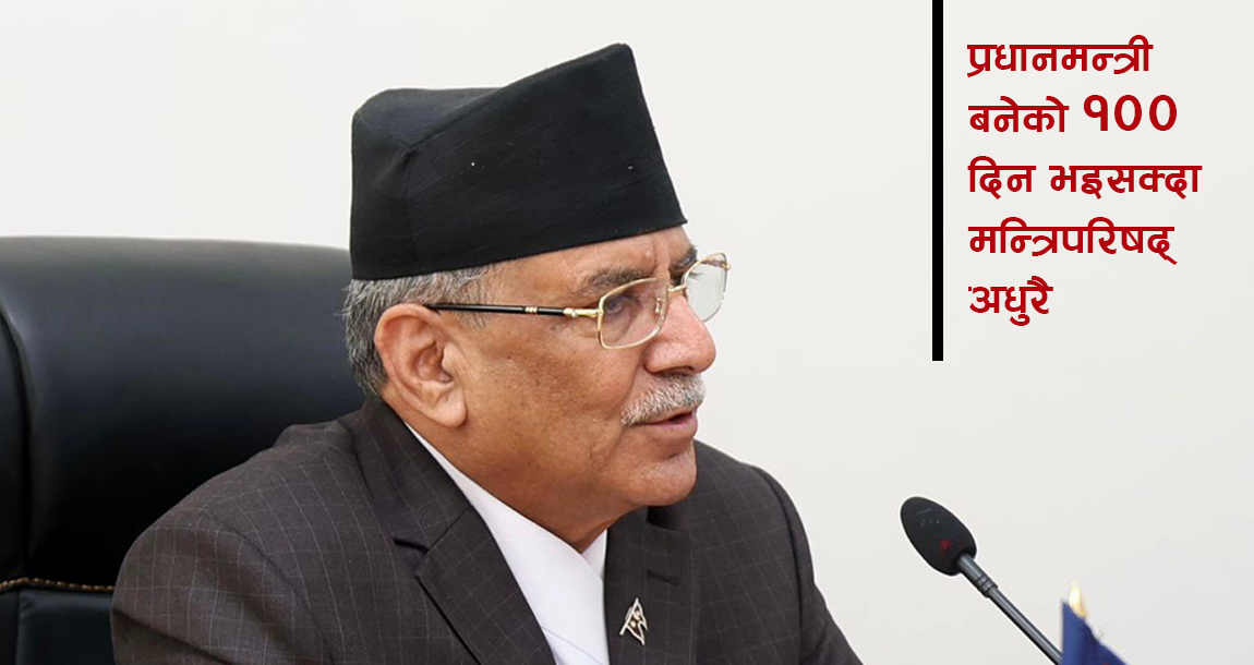 काठमाण्डु- नेकपा माओवादी केन्द्रका अध्यक्ष पुष्पकमल दाहाल ‘प्रचण्ड’ पुस १० गते प्रधानमन्त्री नियुक्त भएको १०० दिनभन्दा बढी भइसक्यो तर हालसम्म प्रचण्ड नेतृत्वको सरकारले पूर्णता पाएको छैन । सुरुमा नेकपा एमालेको समर्थनमा प्रधानमन्त्री बनेका प्रचण्डले राष्ट्रपति निर्वाचनका बेला गठबन्धन फेरेर नेपाली कांग्रेसको समर्थन लिए । गठबन्धन हेरफेरकै गोलचक्करमा प्रचण्ड सरकार लामो समय अपूर्ण रहेको छ ।