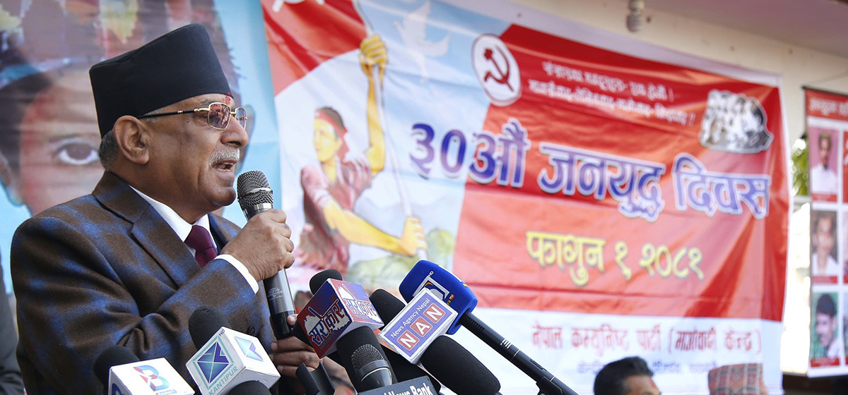 पार्टी केन्द्रीय कार्यालय पेरिस डाँडामा बिहीबार आयोजित ३० औं जनयुद्ध दिवसको अवसरमा आयोजित कार्यक्रममा अध्यक्ष्न प्रचण्डले संविधानको अग्रगामी प्रावधान उल्ट्याउने प्रयासलाई निस्तेज पारिने बताए ।