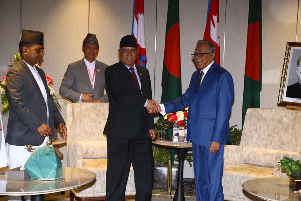 काठमाडौं – नेपालको चारदिने भ्रमणमा रहेका बंगलादेशी राष्ट्रपति मोहम्मद अब्दुल हमिद राजनीतिक भेटवार्तामा व्यस्त भएका छन् । बुधबार बिहान नेकपा अध्यक्ष एवम् पूर्वप्रधानमन्त्री प्रचण्डले राष्ट्रपति हमिदसँग भेटवार्ता गरेका छन् ।
