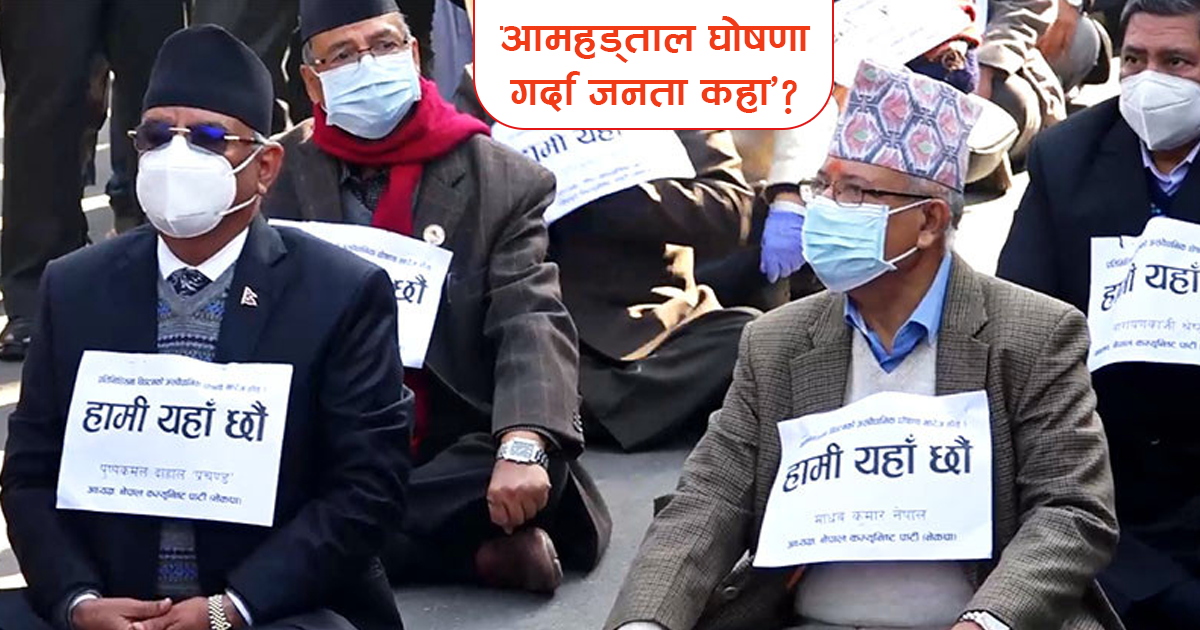 जनतालाई असहज हुने जान्दाजान्दै जनतालाई दुःख हुने गरी आमहड्तालको आन्दोलन नै किन ? प्रश्न प्रचण्ड–नेपाल पक्षका नेताहरूतिर तेर्सिएका छन् ।