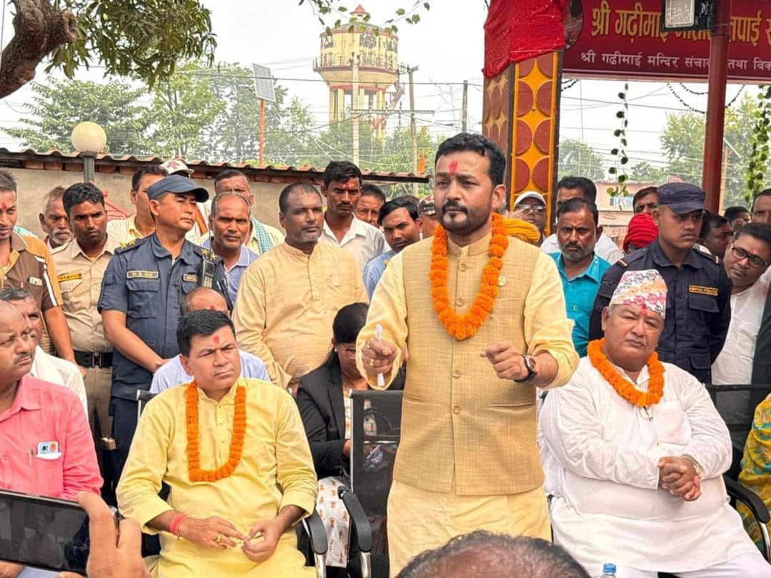 गढीमाई मेलाको तयारीका बारेमा स्थलगत अनुगमनपछि गढीमाई मन्दिर परिसरमा शनिबार आयोजित कार्यक्रमलाई सम्बोधन गर्दै उनले मेला भर्न आउने भक्तजनका लागि शुद्ध खानेपानी, सुलभ शौचालय र सरसफाइमा कुनै कमी हुन नदिने बताए ।