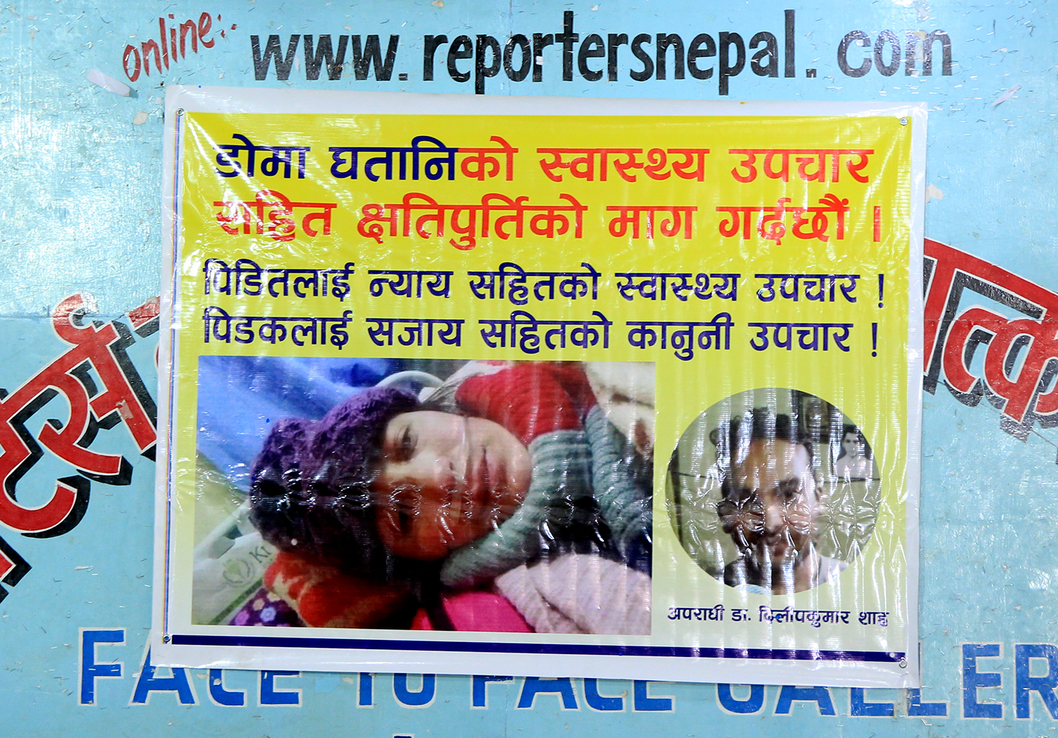 ‘आज उनको जीवन मर्नु न बाच्नु भएको छ ।’ उनले भने, ‘६५ किलो तौलकी डोमा ३० किलोमा झरेकी छिन्,’ डा.आशिष राज भण्डारीलाई मेडिकल काउन्सिल र स्वास्थ्य मन्त्रालयले कारबाही गर्नुपर्ने थापाको माग थियो ।