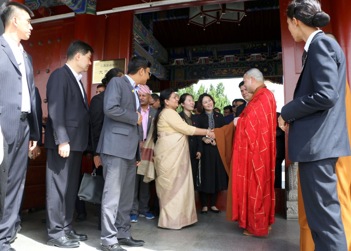 भ्रमणका क्रममा राष्ट्रपति भण्डारीले मन्दिरको आगन्तुक पुस्तिकामा हस्ताक्षर गरिन् । मन्दिर अवलोकनका अवसरमा राष्ट्रपति भण्डारीका साथ परराष्ट्रमन्त्री प्रदीपकुमार ज्ञवाली, ३ नं प्रदेशका मुख्यमन्त्री डोरमणि पौडेल, चीनका लागि नेपालका राजदूत लीलामणि पौडेल, नेपालका लागि चीनका राजदूत होउ याङची, सङ्घीय संसद्का सदस्य, नेपाल सरकारका उच्च अधिकारी तथा निजी क्षेत्रका प्रतिनिधि पनि सहभागी भएकि थिइन् ।