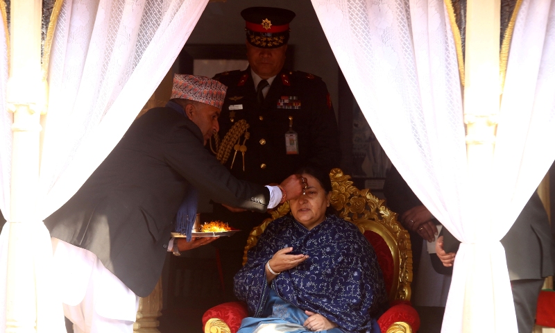 परापूर्वकालदेखि वसन्त पञ्चमीका दिन राष्ट्राध्यक्ष एवं सरकार प्रमुखलगायत नेपाल सरकारका विशिष्ट व्यक्तिबाट वसन्त श्रवण गर्ने परम्परा छ । सो अवसरमा नेपाली सेनाको एक टुकडीले राष्ट्रपतिको सम्मानमा सम्मानगारत अर्पण गर्नुका साथै मङ्गलधुन प्रस्तुत गरेको थियो । उक्त अवसरमा उपराष्ट्रपति नन्दबहादुर पुन, प्रधानमन्त्री केपी शर्मा ओली र प्रधानन्यायाधीश चोलेन्द्रशम्शेर राणाले पनि वसन्त श्रवण गरी टीका, माला र फूलप्रसाद ग्रहण गरे ।