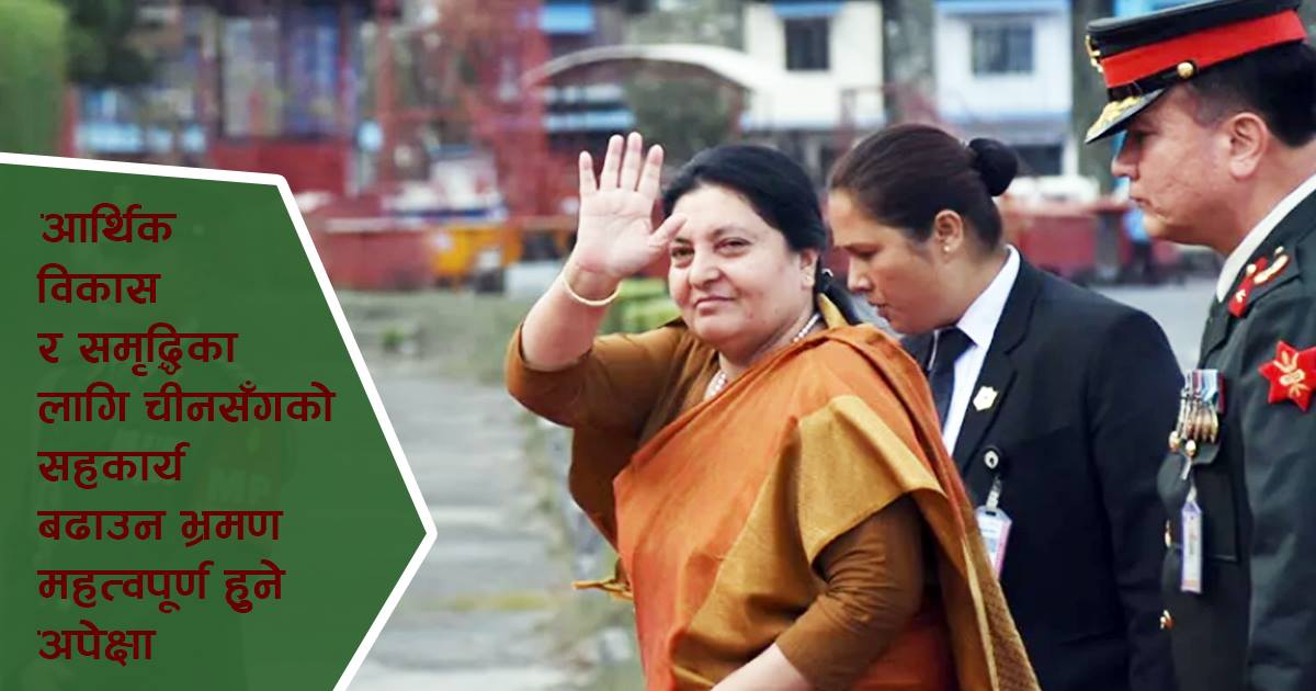 आर्थिक विकास र समृद्धिमा चीनसँगको सहकार्य महत्त्वपूर्ण हुने भनेर सरकारी बुझाइबीच भइरहेको राष्ट्रपतिको भ्रमणलाई महत्त्वपूर्ण मानिएको छ । राष्ट्रपति भण्डारीको उच्चस्तरीय भ्रमणका क्रममा हुने सम्झौता र छलफलले नेपाल–चीन सम्बन्धलाई झनै निकट र विश्वसनीय बनाउने र सहयोग–सहकार्य बढाउने अपेक्षा गरिएको छ ।