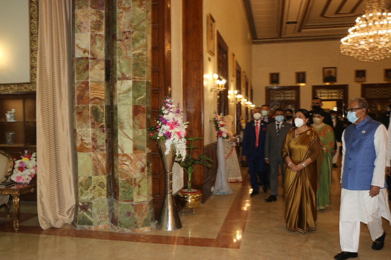 भेटवार्तामा परराष्ट्रमन्त्री प्रदीपकुमार ज्ञवाली, बंगलादेशका विदेशमन्त्री डा एके अब्दुल, बङ्गलादेशका लागि नेपाली राजदूत डा वंशीधर मिश्रलगायत दुवै देशका उच्चपदस्थ अधिकारी सहभागी थिए। भेटवार्तापछि उनीहरु राष्ट्रपति हमिदले सोही भवनमा आयोजना गरेकाे सांस्कृतिक कार्यक्रम र रात्रिभोजमा सहभागी भए।