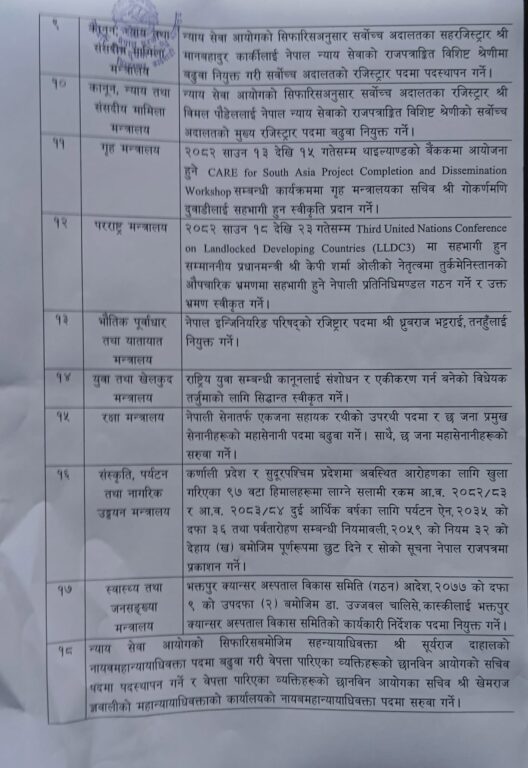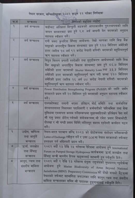 यस्ता छन्, साउन १२ गतेको मन्त्रिपरिषद् बैठकको निर्णय :