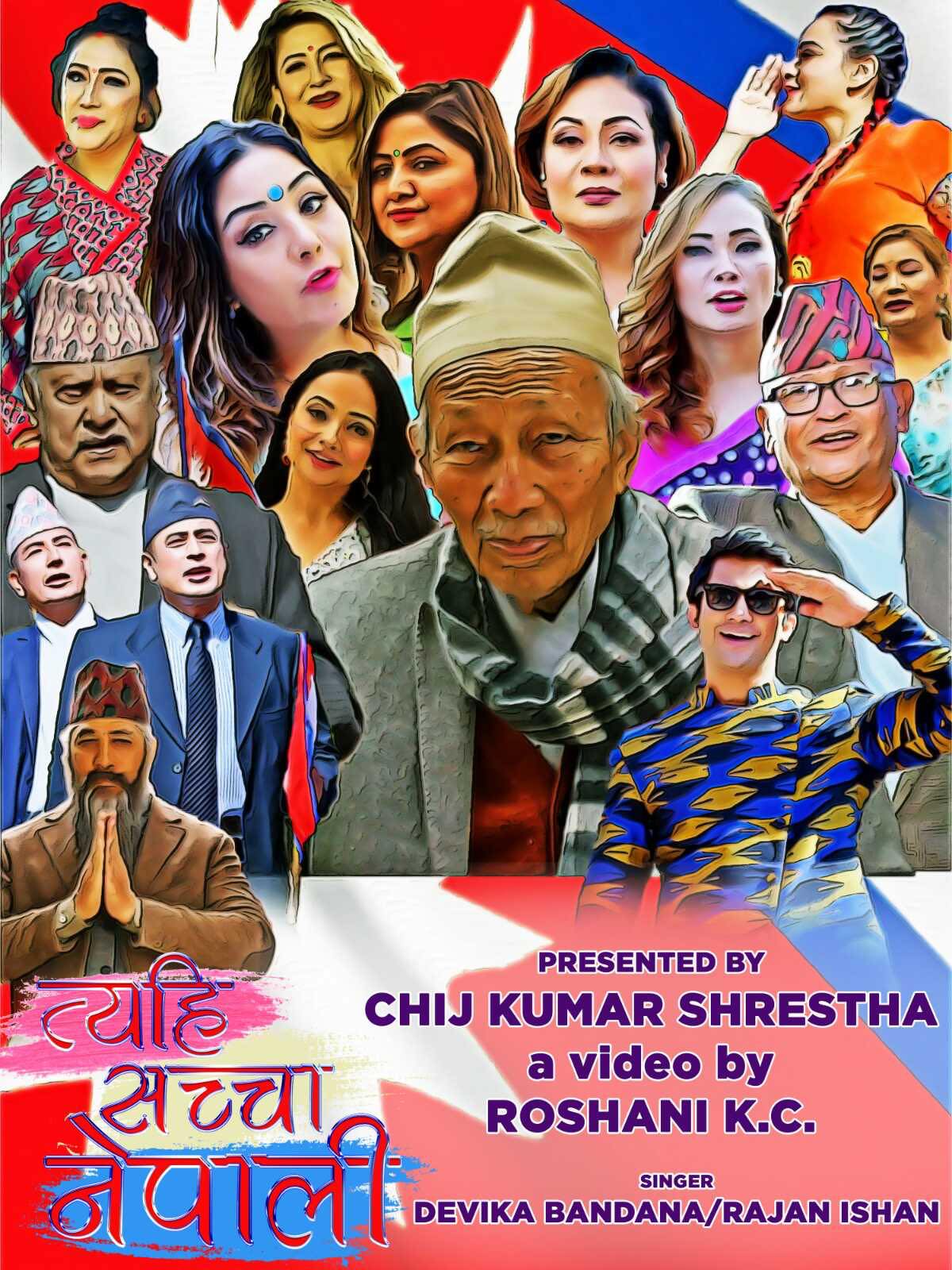 आनन्द अधिकारीको शब्द तथा राजन ईशानको संगीत निर्देशनको ‘त्यही सच्चा नेपाली’ शीर्षकको उक्त गीतमा वरिष्ठ अभिनेता नीर शाहदेखि संस्कृतिविद् सत्यमोहन जोशीसम्मले अभिनय गरेका छन् । रामशरण उप्रेतीद्वारा छायांकन गरिएको उक्त भिडियोलाई अर्जुन जिसीले सम्पादन गरेका छन् भने रेनिश फागोले यसमा कलर करेक्सन गरेका छन् ।