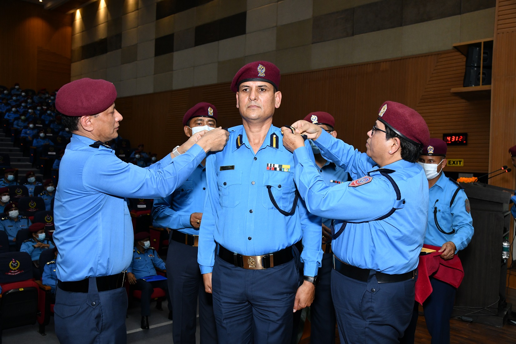 नेपाल प्रहरी प्रधान कार्यालयमा बिहीबार आयोजित एक समारोहबीच महानिरीक्षक सिंहले विभिन्न पदमा पदोन्नति भएका ५७ जना तथा खुल्ला प्रतियोगिताद्वारा नवनियुक्त प्राविधिक प्रहरी निरीक्षक ६ जना गरी कूल ६३ जना प्रहरी अधिकृतहरूलाई दर्ज्यानी चिन्ह प्रदान गरेका हुन् ।