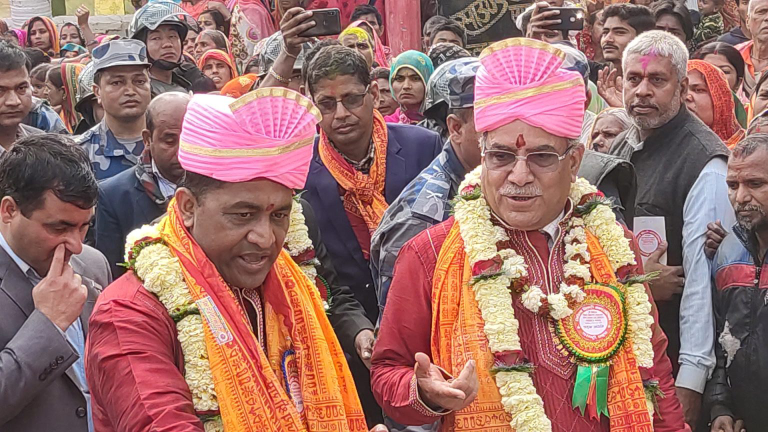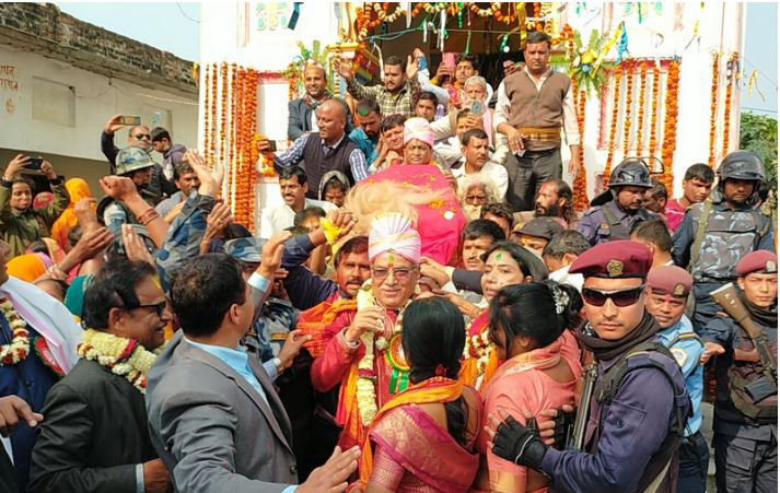 जनकपुरधाम – नेपाल कम्युनिष्ट पार्टी (नेकपा)का अध्यक्ष पुष्पकमल दहाल ‘प्रचण्ड’ले मिथिलाविहारी भगवानको डोला उठाउँदै मिथिला परिक्रमाको उद्घाटन गरेका छन् । मिथिलाविहारी मन्दिर पगेका प्रचण्डले हेलिकोप्टरबाट पुष्पवृष्टिसमेत गरेका थिए ।