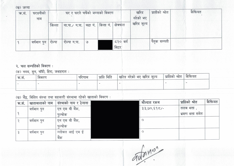 काठमाण्डु – सरकारले सार्वजनिक गरेको सम्पत्ति विवरणअनुसार अर्थमन्त्री वर्षमान पुनको बैंक खातामा ३३ लाख रुपैयाँ रहेको पाइएको छ ।