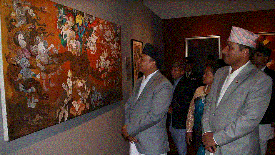 काठमाडौं – उपराष्ट्रपति नन्दबहादुर पुन ‘पासाङ’ले भियनामा जारी नेपाली कला प्रदर्शनीको अवलोकन गरेका छन् । उनले होफवर्ग प्यालेस भित्र रहेको वेल्ट संग्राहलयमा जारी नेपाली कला प्रदर्शनीको सोमबार अपरान्ह अवलोकन गरेरका हुन् ।