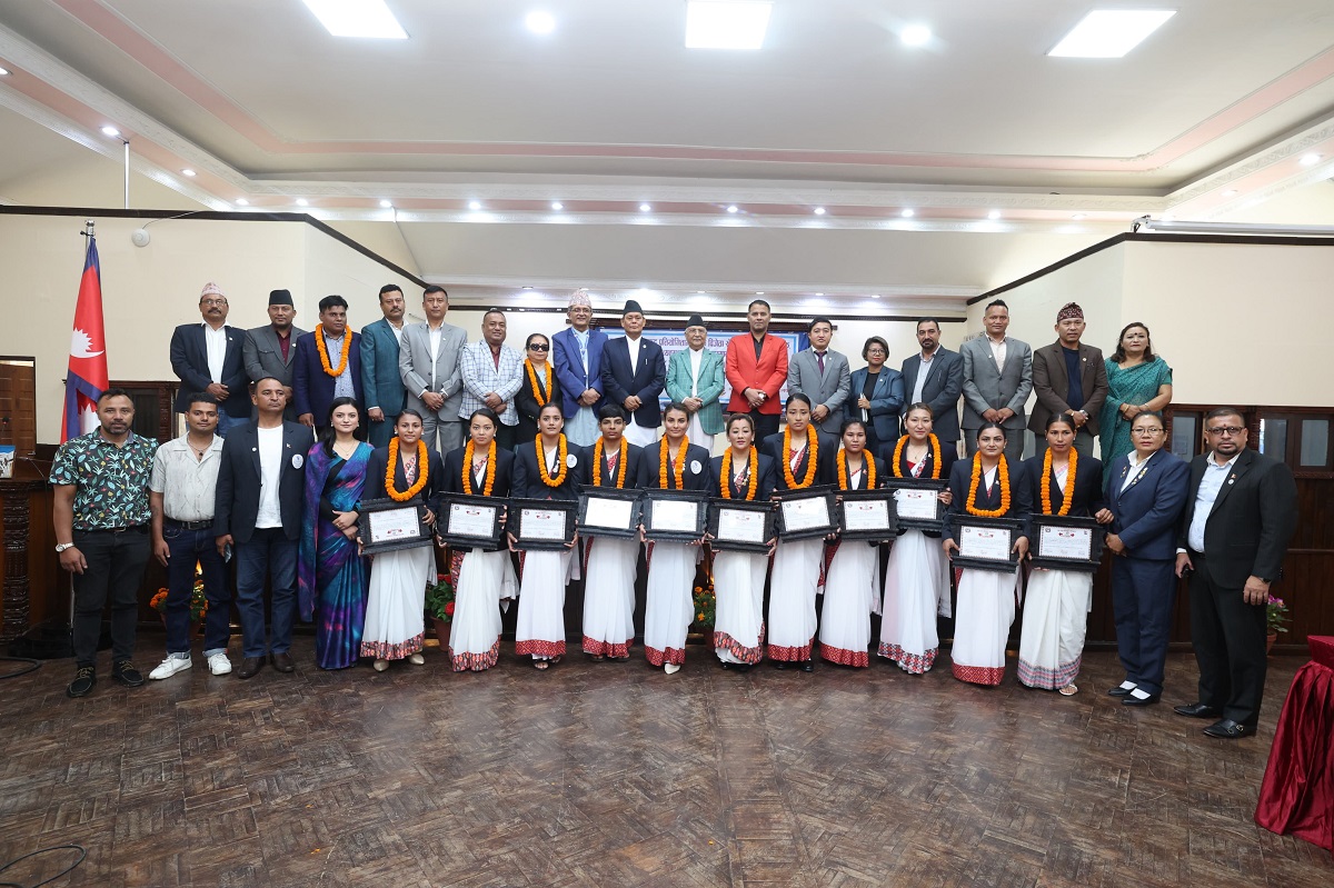 काठमाण्डु – प्रधानमन्त्री केपी शर्मा ओलीले विभिन्न अन्तर्राष्ट्रिय प्रतियोगितामा पदक प्राप्त खेलाडी, प्रशिक्षक र व्यवस्थापकलाई आज सम्मान र पुरस्कार प्रदान गरेका छन् ।