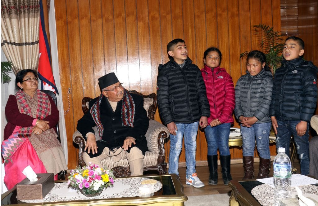 यी बालबालिकालाई अभिभावकत्व दिनु चानचुने कुरा नभएको उल्लेख गर्दै प्रधानमन्त्री ओलीले बालबालिकासँग आफ्नो पनि भावनात्मक सम्बन्ध जोडिएकोे बताए ।केही गरेँ भनेर धाक लगाउने अवस्था नभए पनि यस्ता बालबालिकालाई केही गर्ने सोच बनाएको र सरकारको ध्यान जाने आश्वासन दिँदै उहाँले सिङ्गै देशलाई शिक्षित बनाउने अभियानमा सरकार रहेको बताए ।