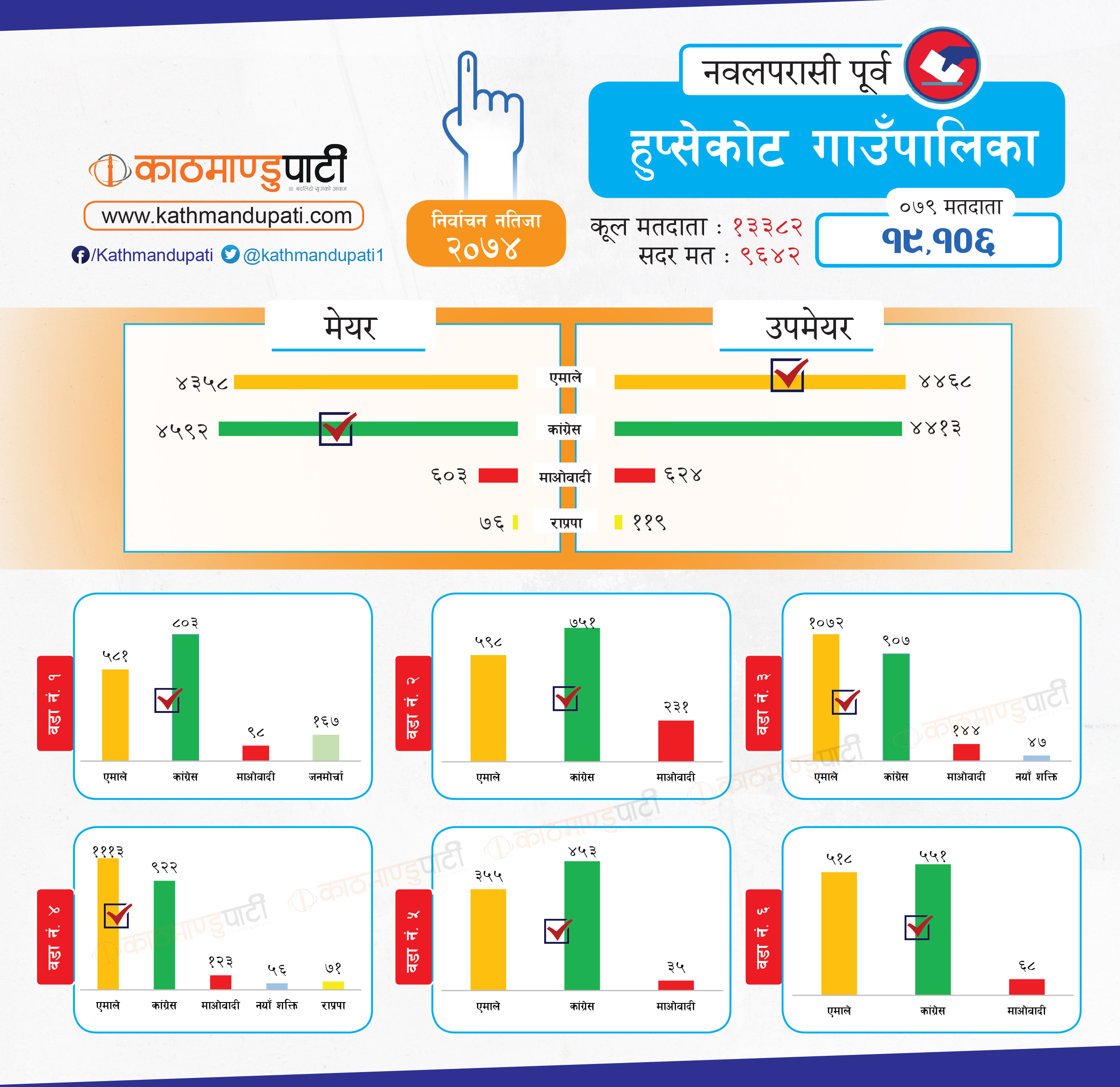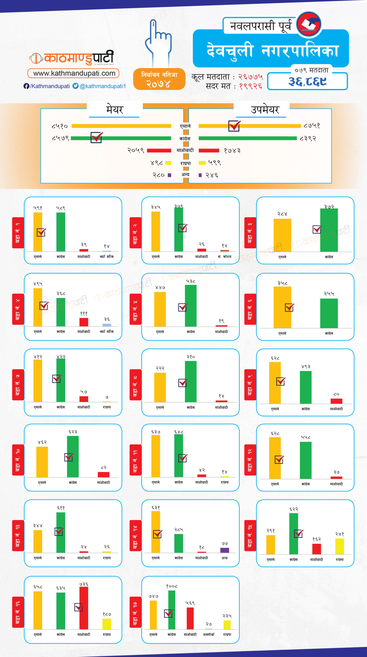 त्यसैले यसपटक नतिजा उल्टन पनि सक्ने सम्भावना छ । नवलपरासी पूर्वमा समग्रमा कांग्रेस नै निकै बलियो देखिन्छ । तर, उसले पहिले जितेका केही पालिका गुमाउन सक्छ भने केही नयाँ पालिका जित्न सक्छ ।