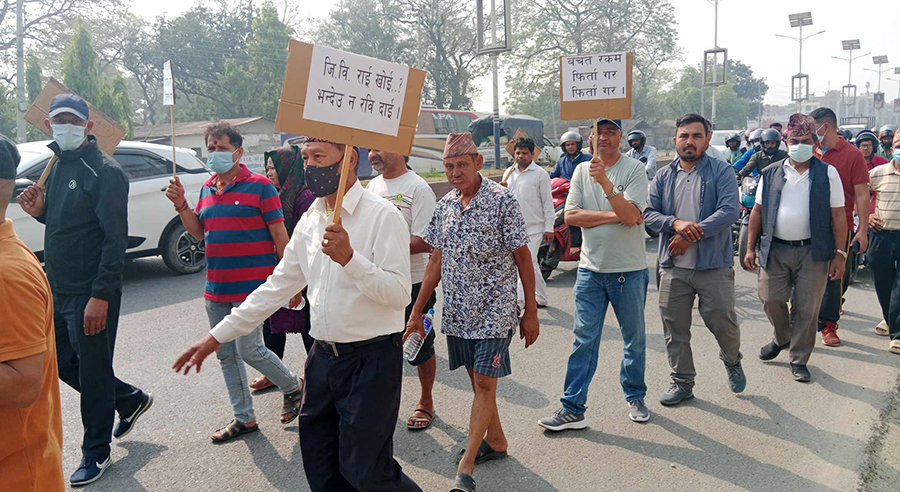 बुटवलको राजमार्ग चौराहाबाट सुरु भएको प्रदर्शन ट्राफिक चोकसम्म पुगेको थियो। प्रदर्शनमा सहभागीहरुले ‘सहकारी ठगलाई राजनीतिक संरक्षण बन्द गर’, ‘जीबी राई खोई ? भन्देऊ रवि दाइ’, ‘गृहमन्त्री आफ्नो वचन पूरा गर, जीबी राई पक्राउ गर’, ‘बचत रकम फिर्ता देऊ’ लगायत नारा लेखिएका प्लेकार्ड प्रदर्शन गरेका थिए।