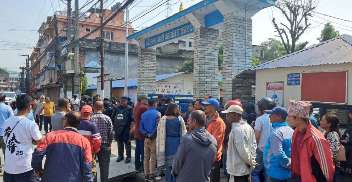 जिल्ला प्रहरी कार्यालय कास्कीको मुल गेट अगाडि रास्वपाका कार्यकर्ता भेला भएर प्रदर्शन सुरु गरेका हुन् ।