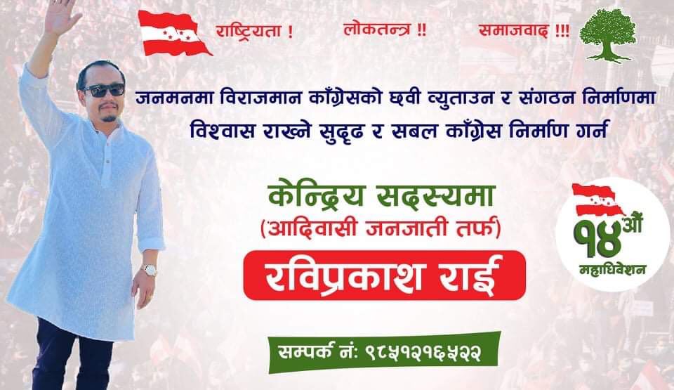 काठमाण्डु – खोटाङका कांग्रेस नेता रविप्रकाश राईले आशन्न १४औं महाधिवेशनमा केन्द्रीय सदस्यमा उम्मेद्वारी दिने घोषणा गरेका छन् ।