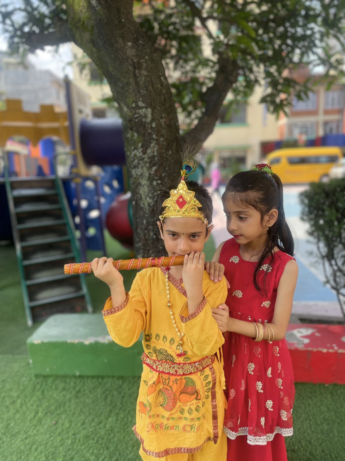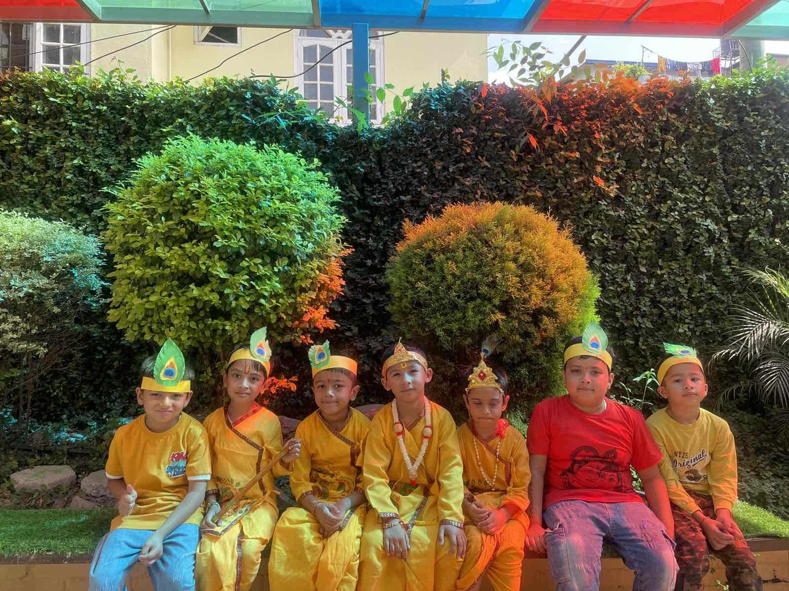 श्रीकृष्ण जन्माष्टमीका दिन राधा कृष्ण बनेका नयाँ बानेश्वर संगम चोकस्थित काठमाडौं प्रज्ञा कुञ्ज स्कुलका बालबालिका