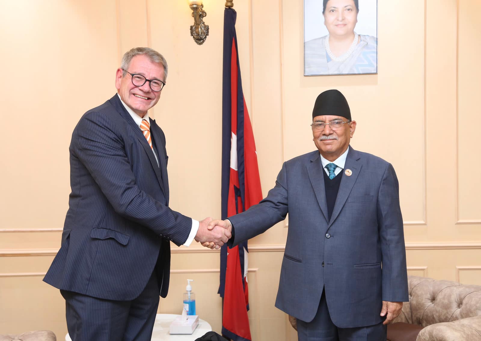 भेटमा प्रधानमन्त्रीले जर्मन सरकारको सहयोगमा सञ्चालित आयोजनाहरूले देशको विकास र समृद्धिमा महत्त्वपूर्ण योगदान पुर्याएको बताए । प्रधानमन्त्रीले सामाजिक न्याय, सुशासन र समृद्धि आफ्नो सरकारको प्राथमिकता रहेको बताउँदै विगतझैं अन्तर्राष्ट्रिय समुदायको पूर्ण सहयोग रहने विश्वास व्यक्त गरे ।