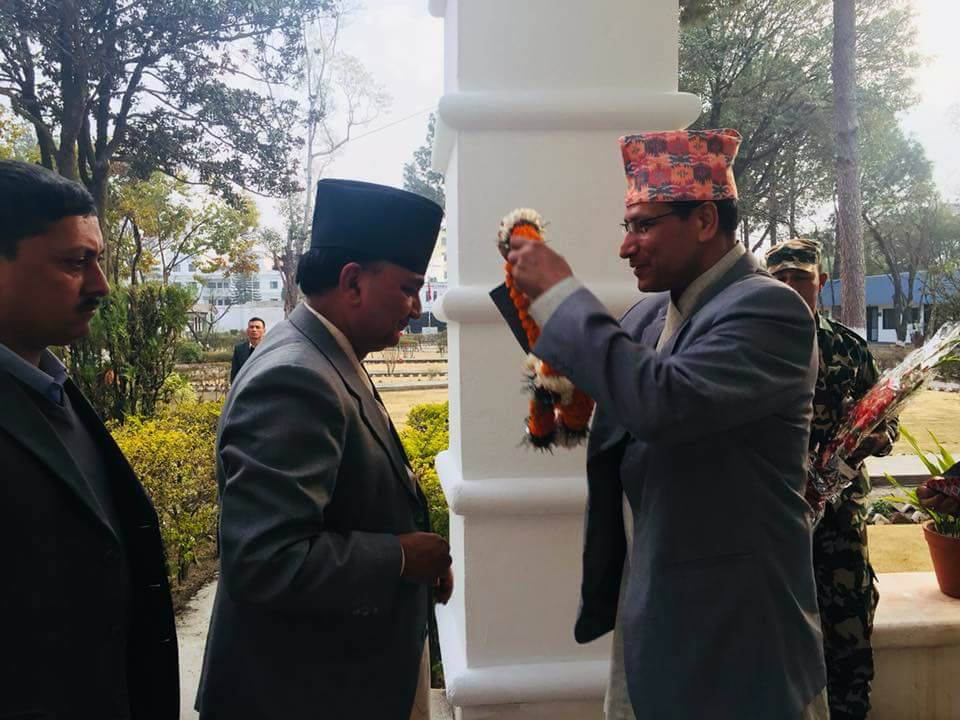 सपथ खाएलगत्तै पोखरलेललाई फूल माला सहित मन्त्रालयमा स्वागत गरिएको हो ।