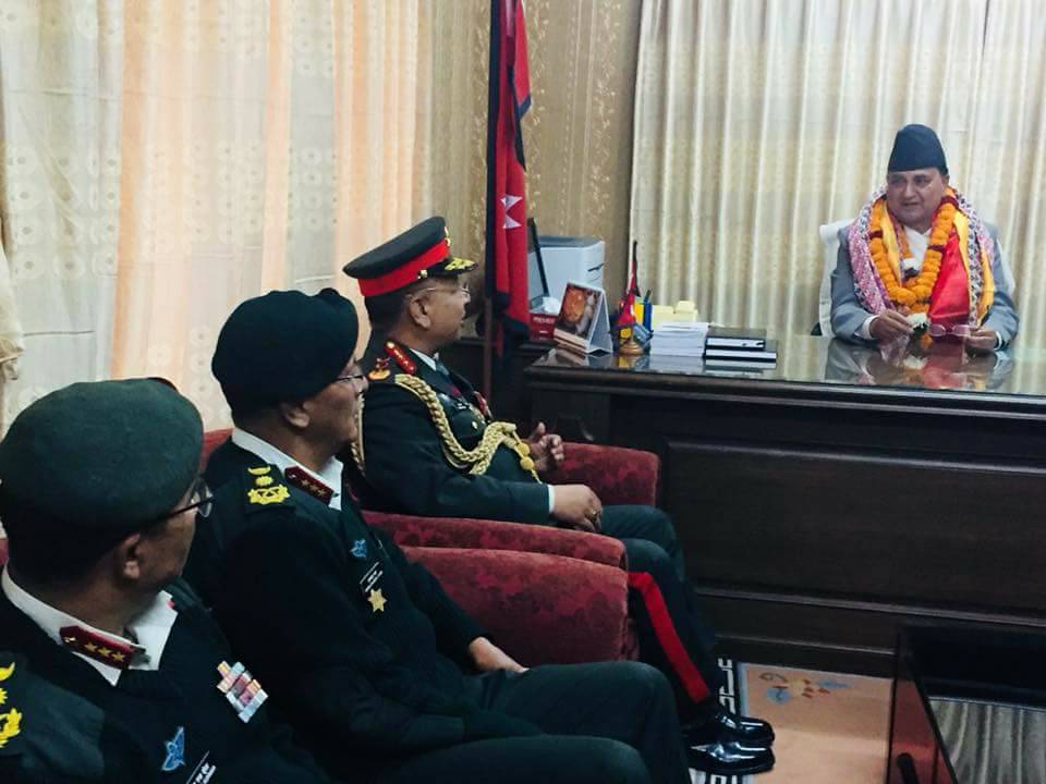 नवनियुत्त रक्षामन्त्री इश्वर पोखरेललाई सिहंदरवारमा स्वागत गरिएको छ । एमालेबाट रक्षामन्त्रालय सम्हाल्ने जिम्मा पाएका महासचिव पोखरेललाई सिंहदरवारमा प्रधानसेनापति राजेन्द्र क्षेत्री, रक्षा सचिव बिनोद केसी र सेनाका रथी पूर्णचन्द्र थापाले स्वागत गरेका हुन् ।