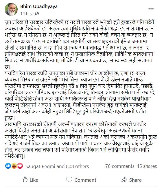 कोटदेवी सहकारी सस्थाका सस्थापक अध्यक्ष सुमन जिसिको आयोजनामा रक्तदान कार्यक्रम गरेको हो । यो विषम परिस्थितिमा रक्तदान गरि नेपाल रेडक्रस सोसाइटीलाई जिम्मा लगाईएको छ ।