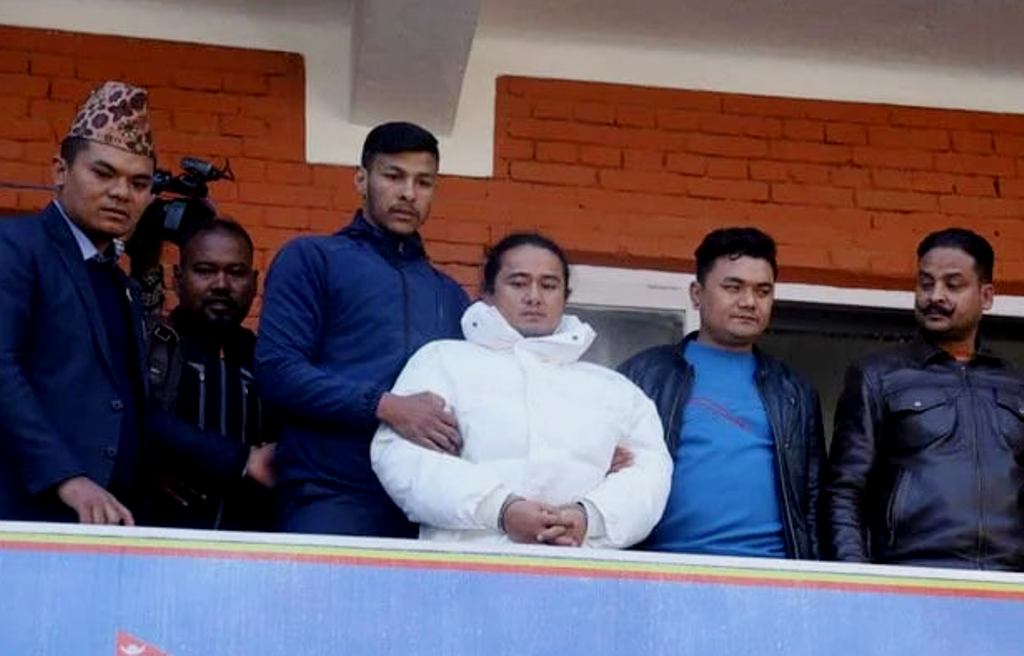 सेतो ज्याकेटमा देखिएका बम्जनलाई हत्कडीसहित सार्वजनिक गरिएको छ । त्यस्तै उनको साथबाट प्रहरीले ३ करोड ३४ लाख ३७ हजार ९०६.७ रुपैयाँ बरामद गरेको जनाइएकोछ ।