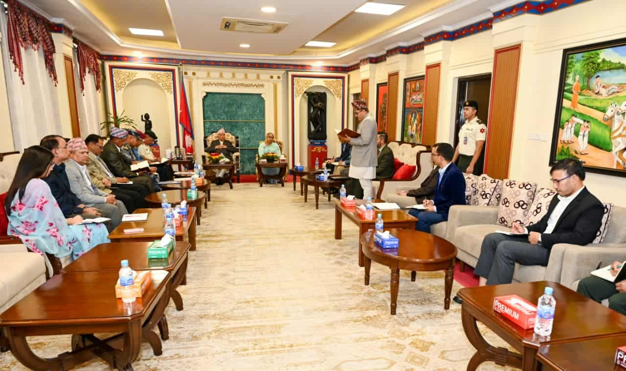 काठमाण्डु- राष्ट्रपति रामचन्द्र पौडेलले प्रधानमन्त्री सुशीला कार्कीसहित चार वटै सुरक्षा निकायका प्रमुखसँग छलफल गरेका छन्।